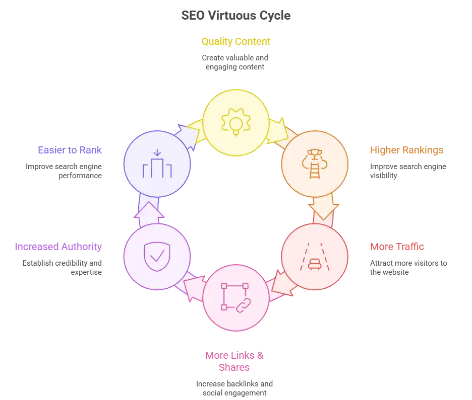 When you consistently create quality content, when you earn links from reputable sites, when you rank highly for important keywords, something happens. Google starts trusting your site more. Your domain authority increases. And that authority makes everything else easier.